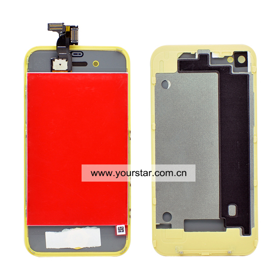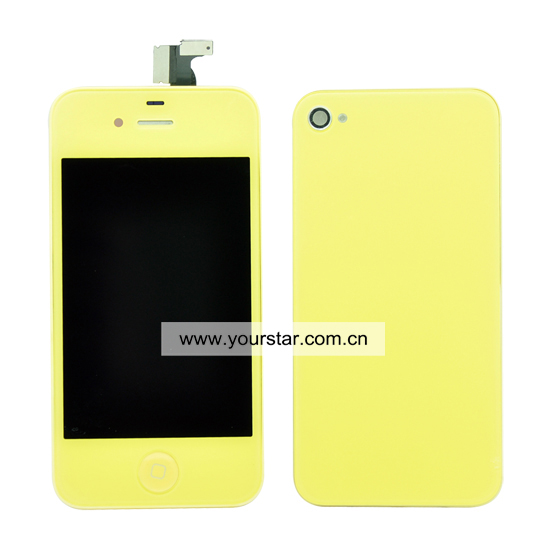 iPhone 4 LCD complete with same color battery cover and joystick original with copy touch screen yellow